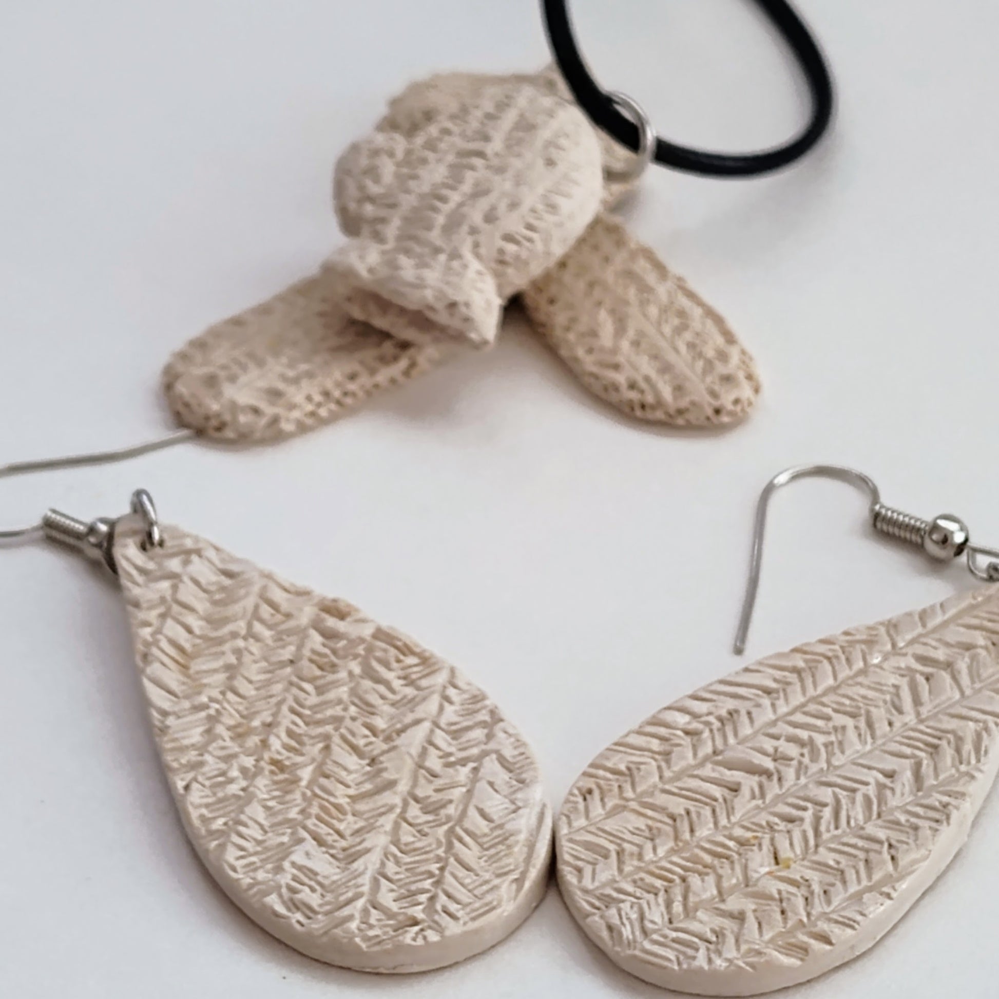 Each jewelry set pairs a coordinating polymer clay necklace and earrings—beautifully balanced, lightweight, and totally one of a kind. Whether you’re drawn to nature-inspired pieces, knit-textured styles, or sweet food-themed charms, every combo tells a little story of comfort and creativity.